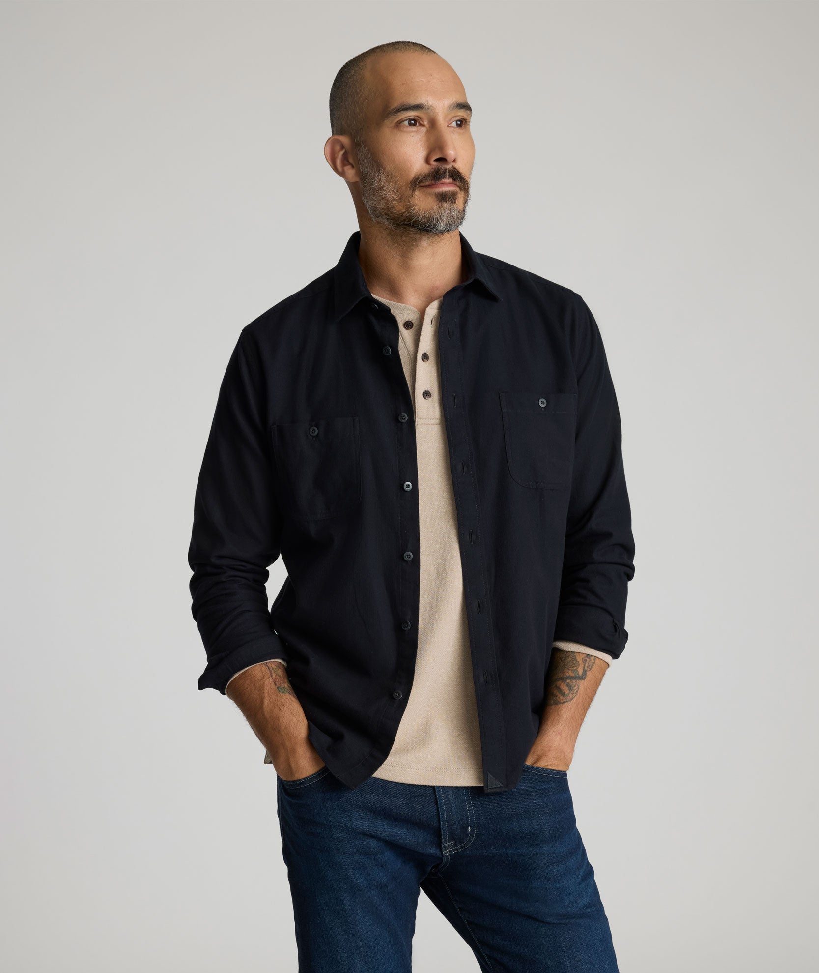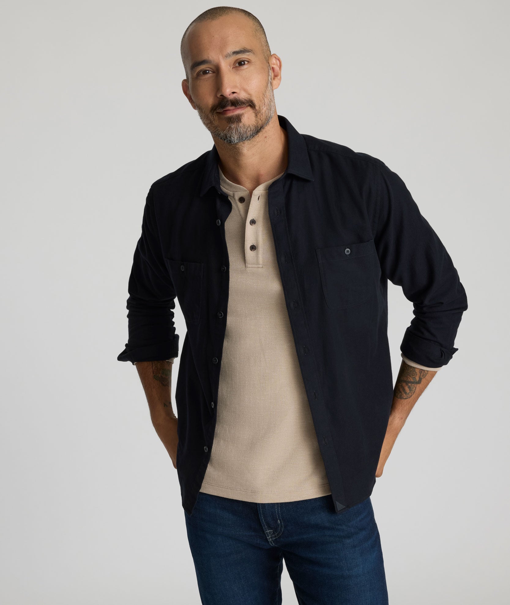 Meet our customer-favorite flannel. The Hemsworth Flannel Shirt, in 100% supersoft cotton with a two-tone herringbone weave, features two chest pockets—a nod to Western style. It’s an easy cool-weather shirt that looks great on every guy. Pair it with our Classic Chino Pants for a slightly dressed-up vibe, or throw it over one of our supersoft tees for a cool, casual look at your next get-together.